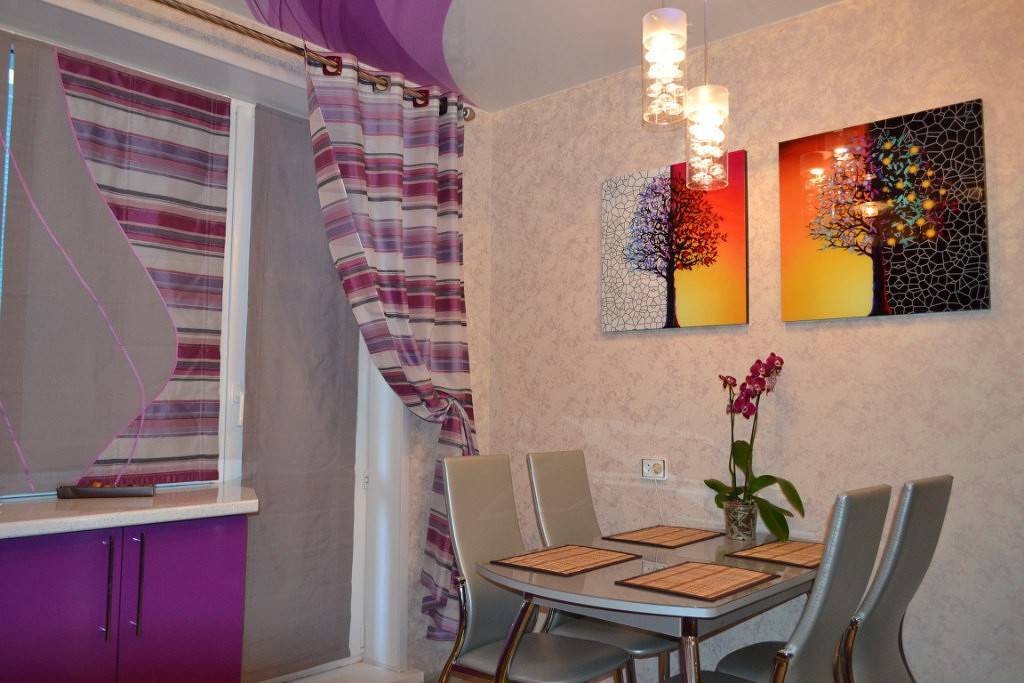 Современные стили в интерьере кухонь такие, как хай-тек, приветствуют использование геометрии в оформлении окон. Это могут быть овалы, квадраты, зигзаги или полосы, способные визуально расширить окно или вытянуть вверх. Для этого всего лишь необходимо подобрать рисунок рольштор с расположением полос в нужном направлении.