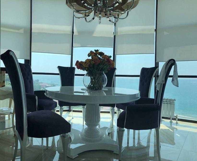 Ткани, из которых изготовлены римские шторки, имеют уникальные пыле- и влагоотталкивающие свойства, что очень важно для кухни. Благодаря отличной защите от солнца эти занавески являются не только элегантными, но и практичными.