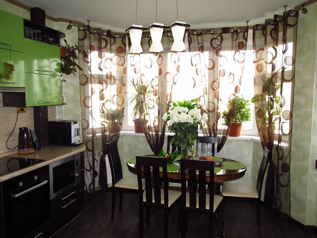 Добавят кухне роскоши. Но существует один нюанс: чем крупнее рисунок, тем больше должно быть окно кухни.