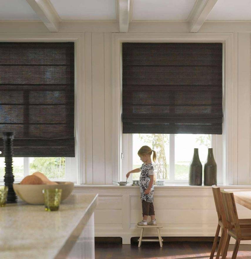Коричневый. 200-300 лет назад это был цвет богатства, состоятельности и роскоши. «Римки» в коричневых тонах хороши для классических интерьеров кухонь. Красиво сочетаются с деревянной мебелью светлых пород, выглядят изящно, неброско, хорошо защищают от солнца.