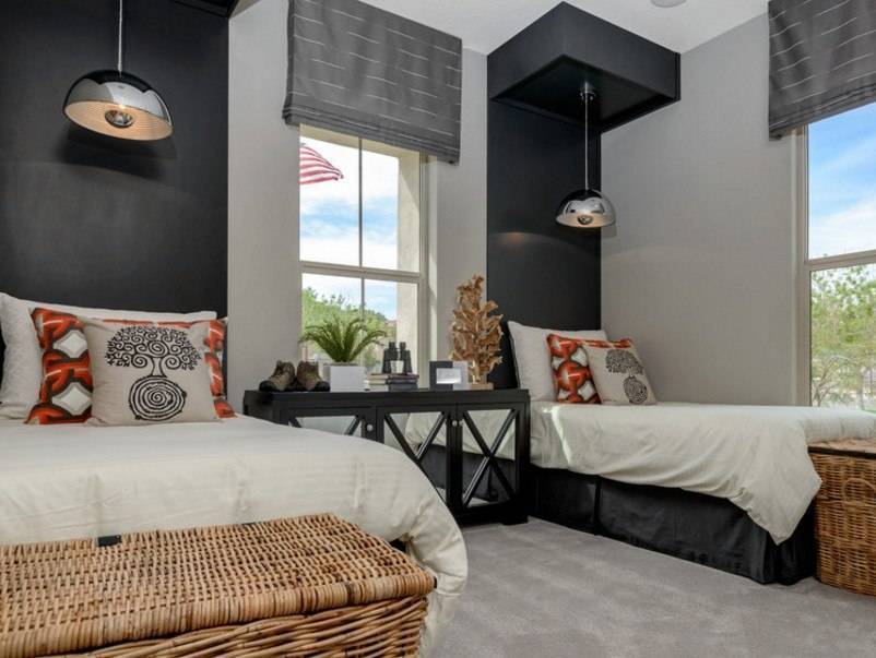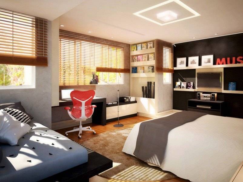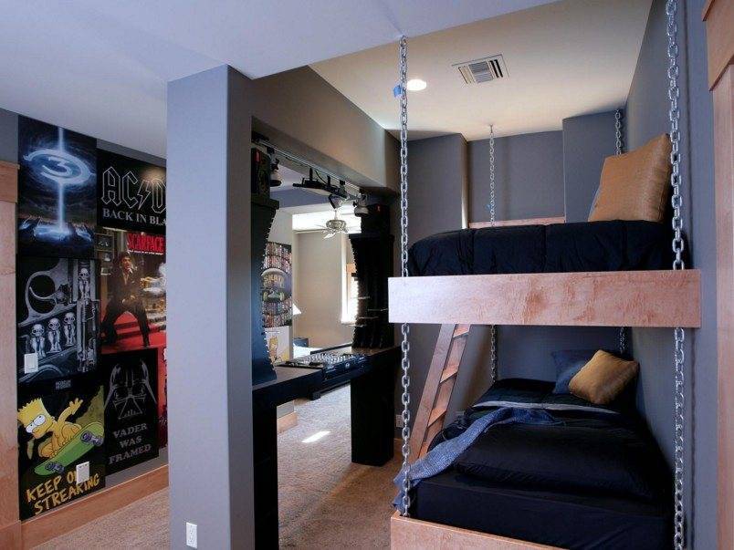 Комната для двух человек должна, прежде всего, располагать площадью. Здесь должны свободно размещаться два спальных места и, как минимум, одно рабочее место для выполнения домашних заданий. Для экономии места отлично подойдет двухуровневая кровать. Выбирайте модель с прочным каркасом, способную выдержать большие нагрузки.