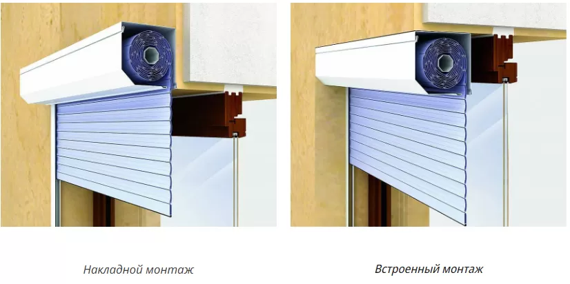 Существует несколько типов монтажа роллетных систем. Наиболее популярным является накладной, в данном случае короб размещается над оконным или дверным проемом. А значит, установка конструкции никак не влияет на количество естественного света, проникающего в комнаты.