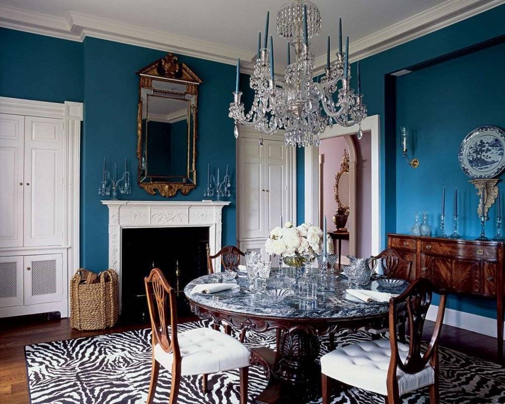 Зеленый. Этот тон больше характерен для английской классики. Темно-зеленый и изумрудный идеально сочетается с позолотой и деревом.
