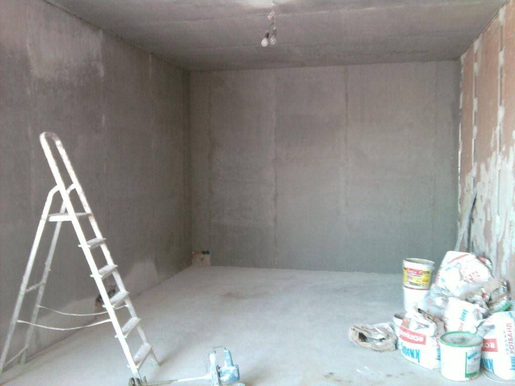 Последний этап подготовки технически прост, но требует больших физических затрат, одни мешки со штукатурными смесями сколько весят. Чтобы черновая подготовка шла быстрее, заручитесь помощью напарника. Вам предстоит выровнять полы для нового покрытия, заштукатурить стены (или выровнять их гипсокартоном) и потолки.