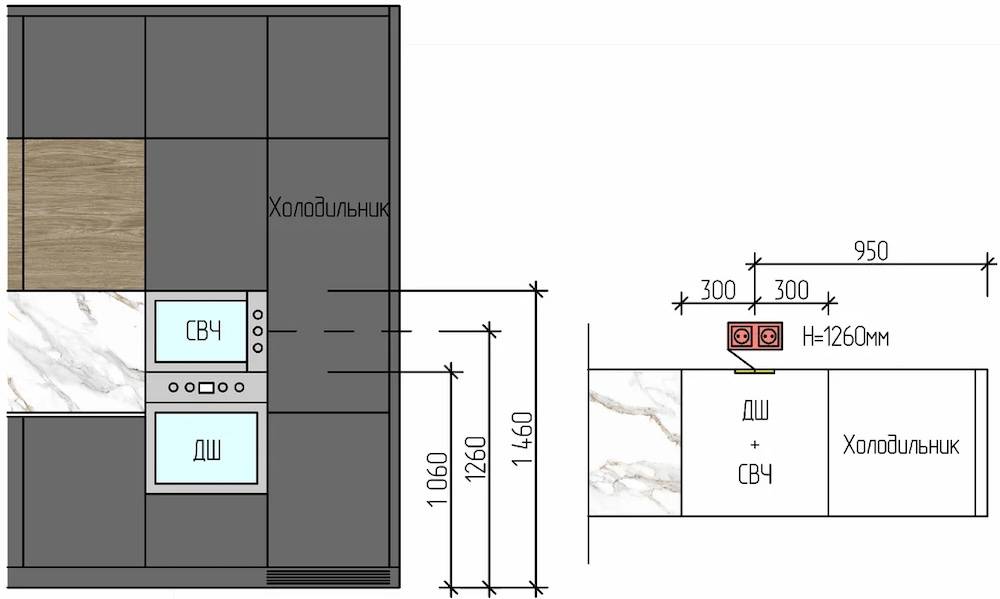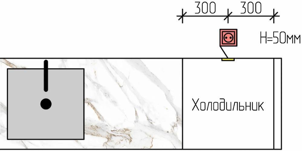 Схема размещения розеток на кухне