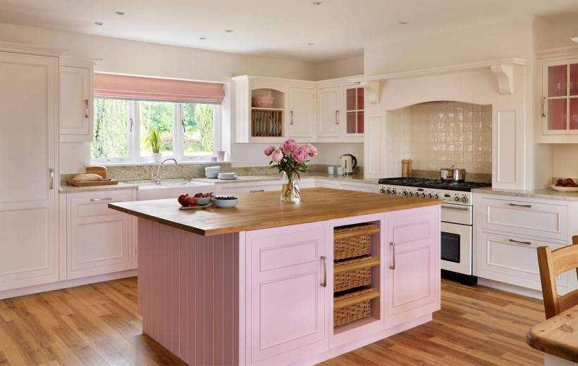 Сочетание розового цвета с другими оттенками в интерьере кухни