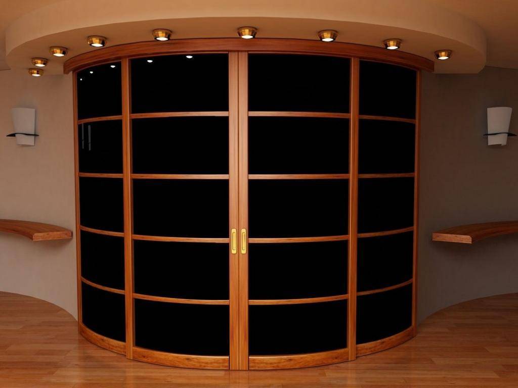 - Если гардеробная будет располагаться в углу комнаты, то для нее следует выбирать полукруглые двери.
