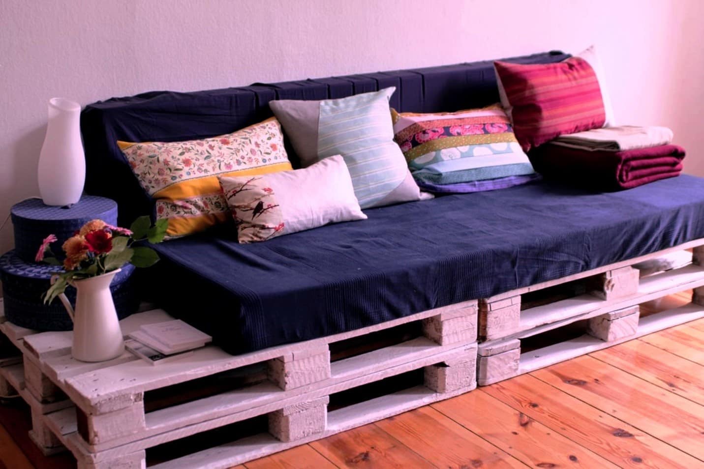 - Скамейки должны быть мягкими. Длительное сидение на жесткой деревянной паллете может вызвать серьезный дискомфорт. Прежде всего рекомендуется позаботиться о наличии мягких подушек и покрывал, которые сделают обстановку намного приятнее.