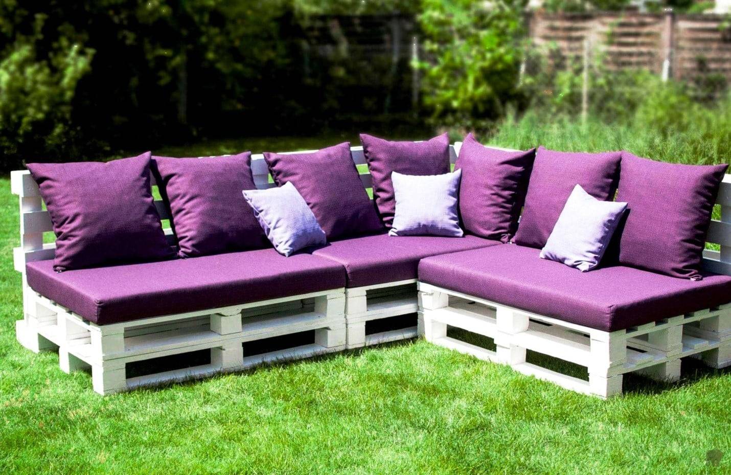 Диван может быть одно-, двух- или трехместный, угловой, круглый и т. д. Добавьте спинку или боковые части для большего удобства и декорируйте изделие мягкими подушками или пледами. На таком диванчике можно почитать, посмотреть кино или вздремнуть теплым летним вечером. Посмотрите на фото садовой мебели из поддонов своими руками, возможно, какую-то идею вы захотите воплотить у себя.