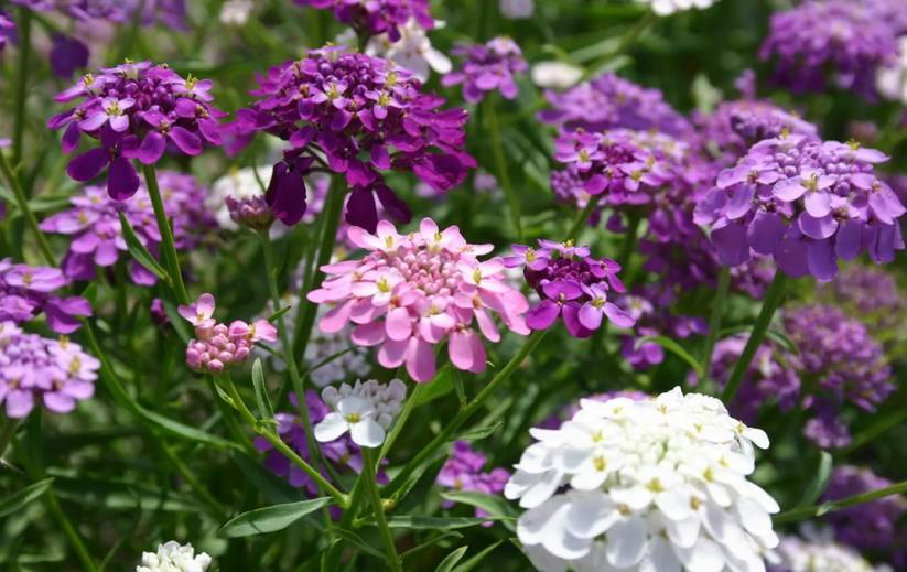 Иберис можно посеять под зиму или рано весной. Нежные соцветия белой, розовой, фиолетовой окраски украсят клумбу. Размножается самосевом.