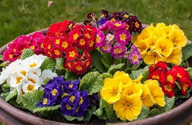 Примулы неприхотливы, отличаются большим разнообразием форм и расцветок, компактны и невысоки ростом, не требуют особого ухода. Относятся к первоцветам. Желательно сочетать их с другими цветами, так как примулы заканчивают свое цветение в начале июня.