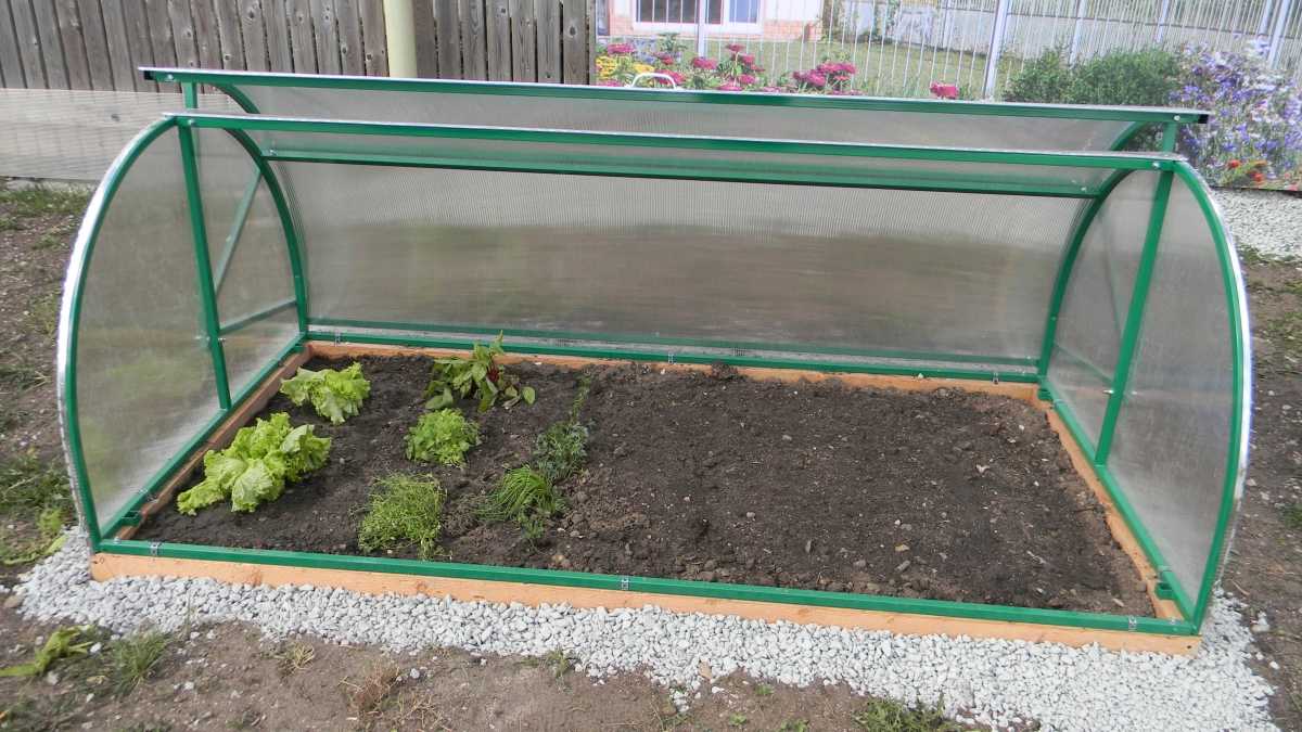 Готовые изделия из поликарбоната для выращивания различных огородных культур – это обычно надземный вариант. Хотя можно подобрать такой, который удастся применять как крышу для углубленного варианта «утепленной грядки». А если ничего подходящего в продаже нет, нетрудно самостоятельно соорудить парник с покрытием из сотового листа поликарбоната.