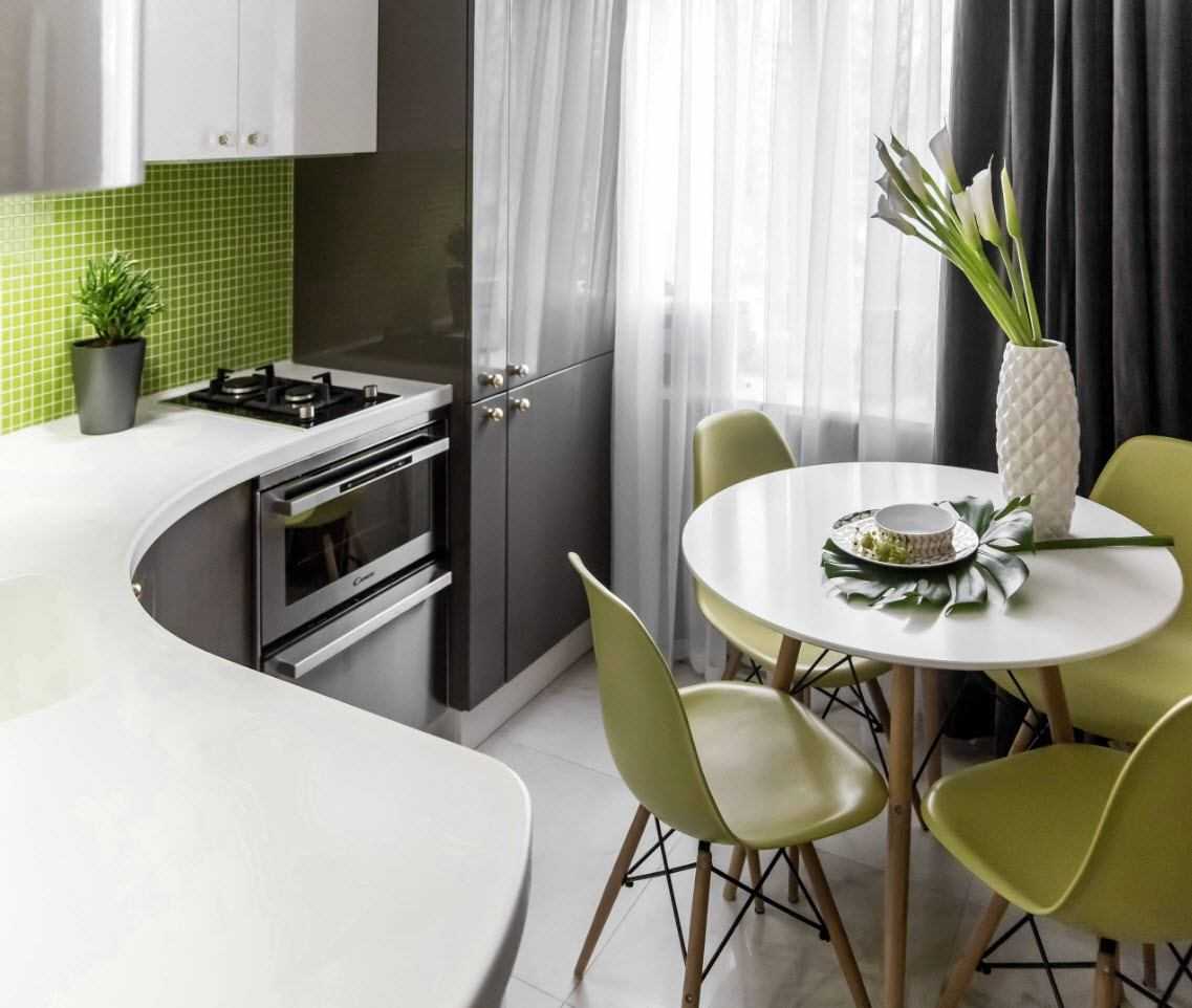 Преимущества и недостатки кухонного гарнитура лаймового цвета