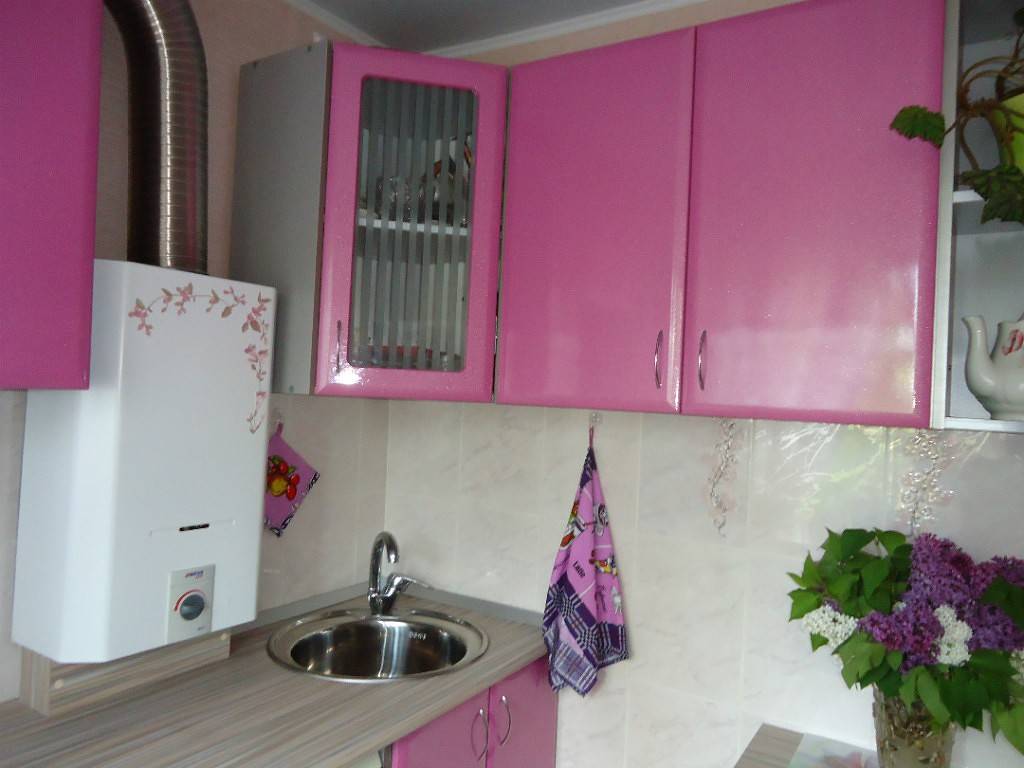 Маленькие кухни, мебель в которых расположена в глухом углу комнаты, так же имеют несколько конструктивных решений для монтажа газовой колонки.