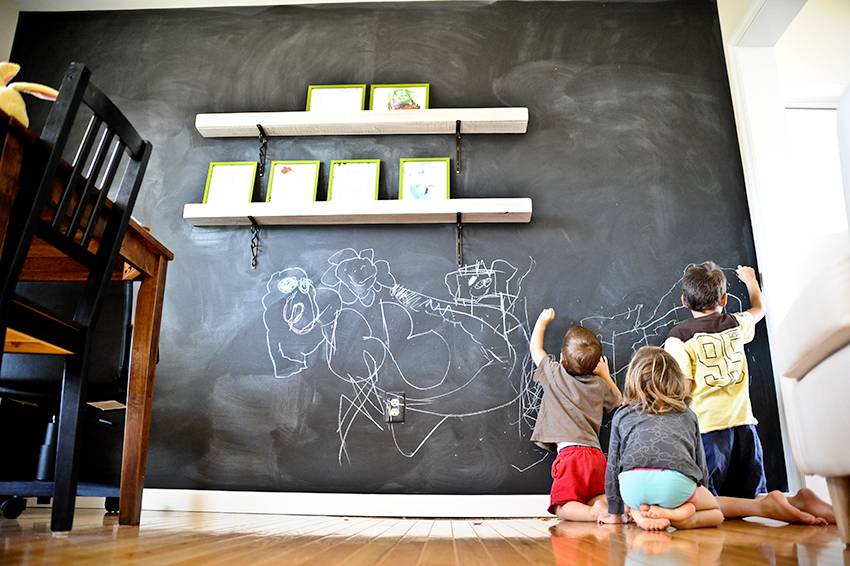 - Меловые. Это своего рода грифельная доска для рисования маркерами или мелками. Такие обои заинтересуют школьников, творческих работников, карикатуристов. На них можно изобразить что угодно, от математического знака, до настоящего шедевра. А тряпка поможет стереть рисунок.
