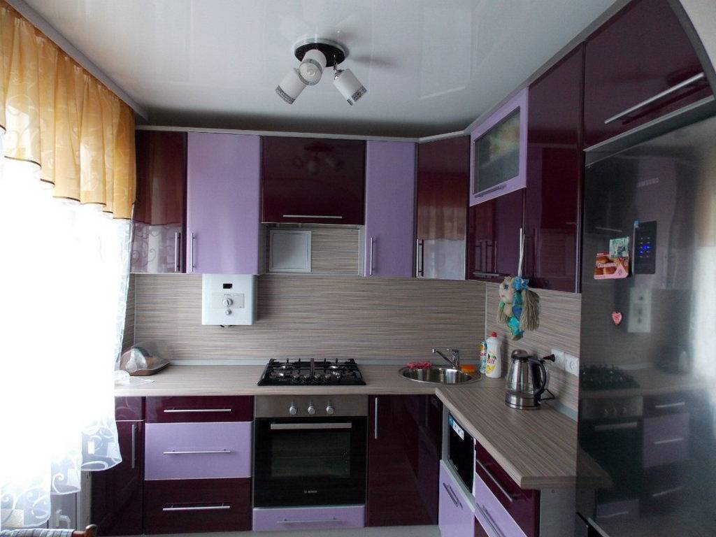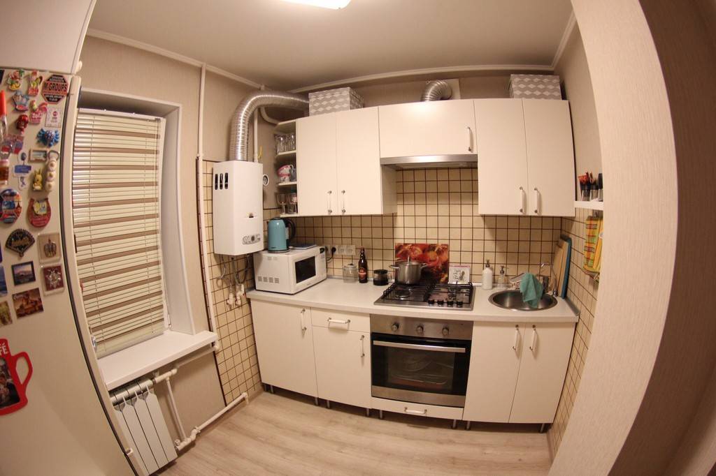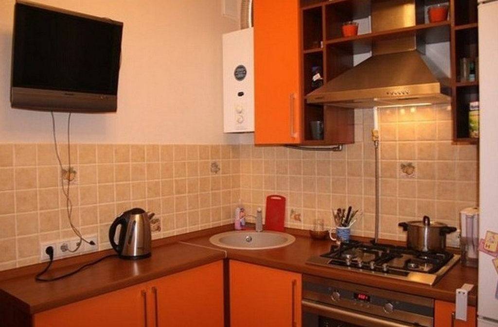 Угловая кухня в хрущевке с газовым котлом в углу