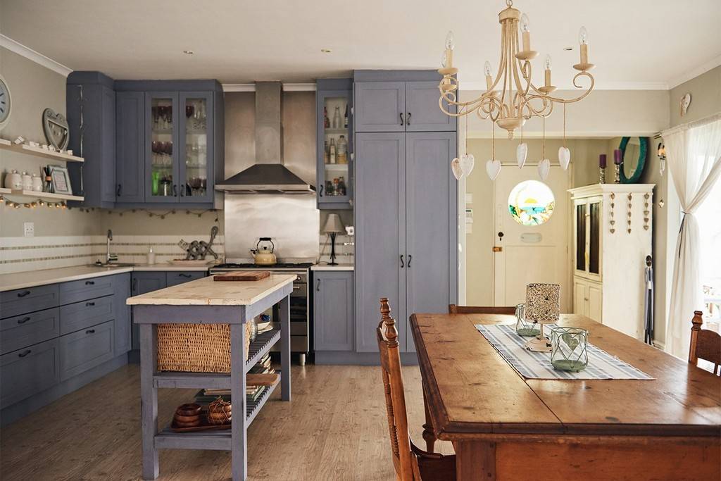 Голубой цвет часто ассоциируют с небом или водой. Серый оттенок в свою очередь – с землёй. В любом случае, сочетание этих двух оттенков позитивно скажется на вашем восприятии и времяпровождении на кухне.