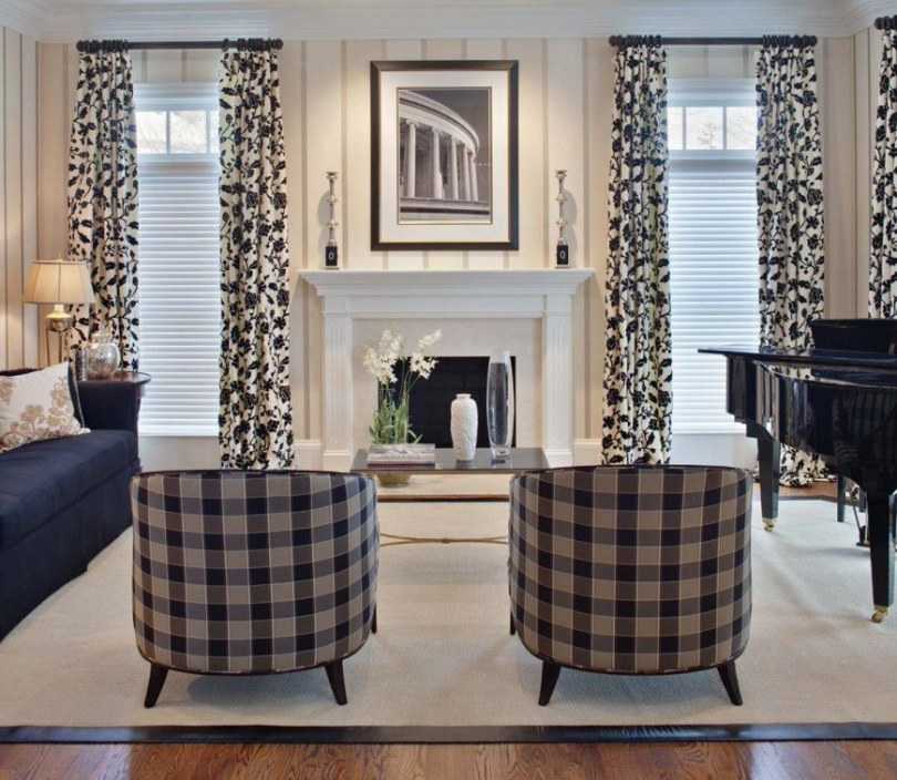 - Стилистическое решение интерьера. Универсальный вариант исполнения – это шторы, имеющие клетчатый и полосатый принт. Они впишутся в любой дизайн. Современный рынок текстильных изделий переполнен большим количеством таких товаров. Рисунок может быть самым разным, набивным, оригинальным или сделанным таким же, как для декорирования мягкой мебели.