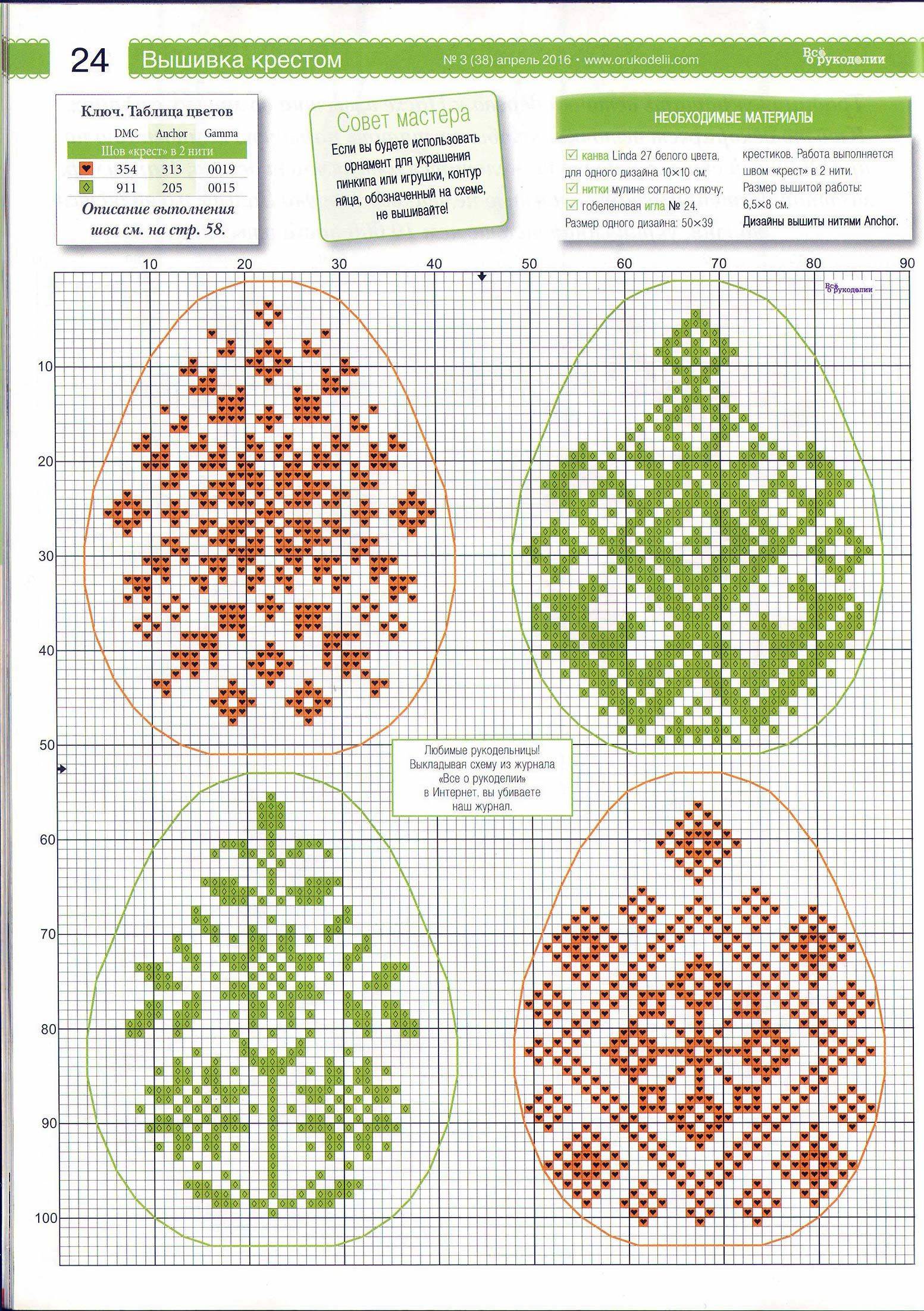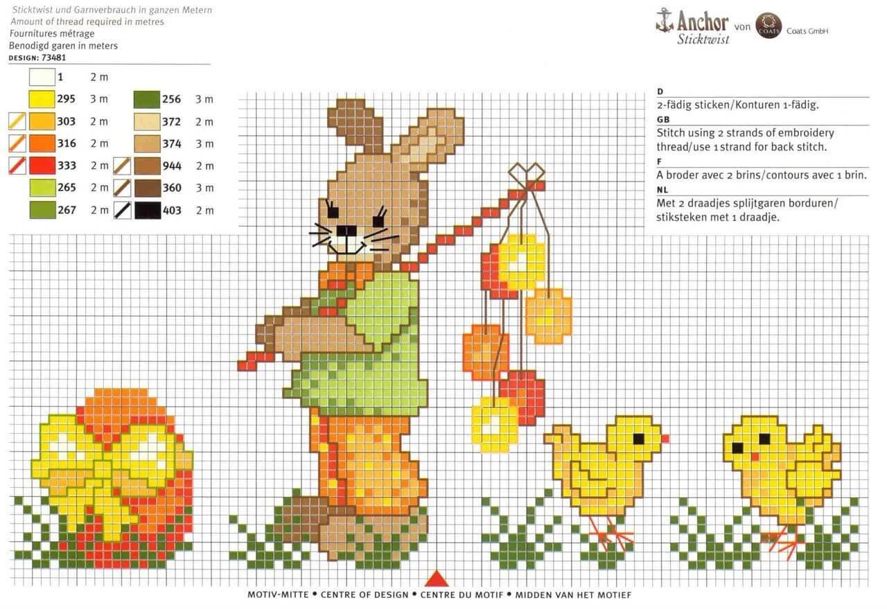 Схемы вышивки к Пасхе, которые раньше изображали в основном куличи, церковные купола и другую православную атрибутику, в последние годы обогатились мотивами из западнохристианских : желтые милые цыплята, веселые пасхальные кролики, яркие крашенки и весенние цветы. Это делает праздничную атрибутику еще более светлой и радостной, как и сам праздник.