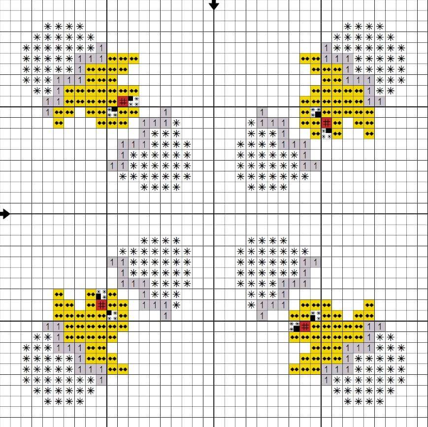 Рассматривая схемы, нужно учитывать, что каждый квадратик на них – это отдельный крестик. Вышивают их нитью мулине в два сложения.