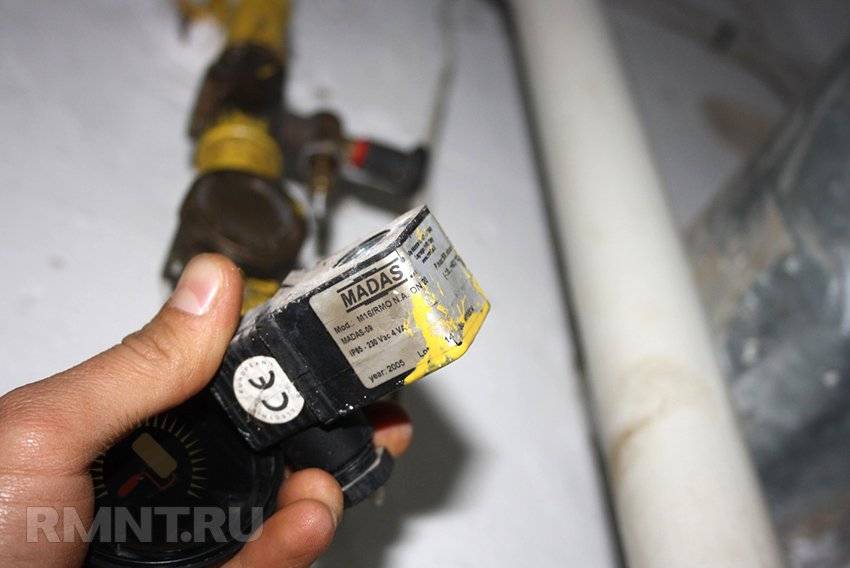 - Если проверка работоспособности выполнялась совместно с клапаном-отсекателем, надо руками взвести шток запорной арматуры для подачи газа оборудованию.