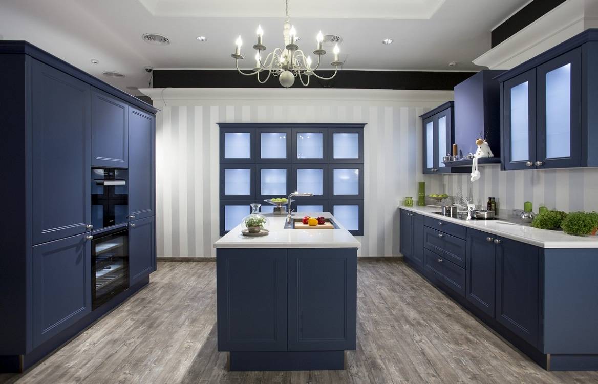Именно первая группа может сделать помещение мрачным, поэтому ее надо с осторожностью использовать в небольших помещениях. А вот на просторной кухне бояться нечего, так как темно-синий лишь добавит благородства в интерьер