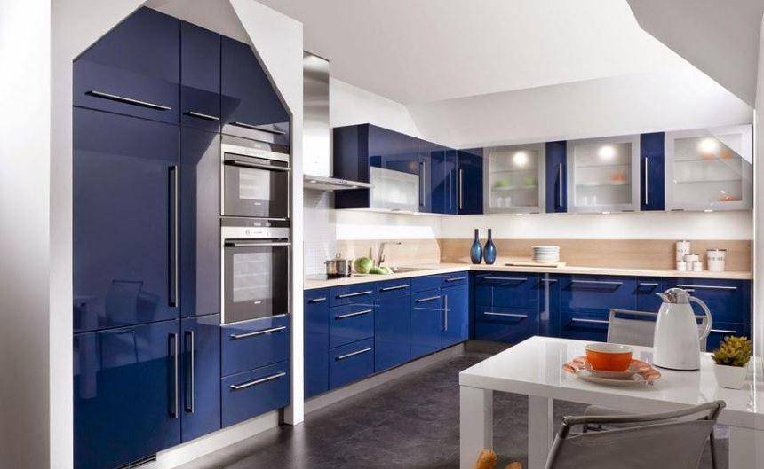 - На кухне, расположенной на южной стороне используются любые оттенки синего.