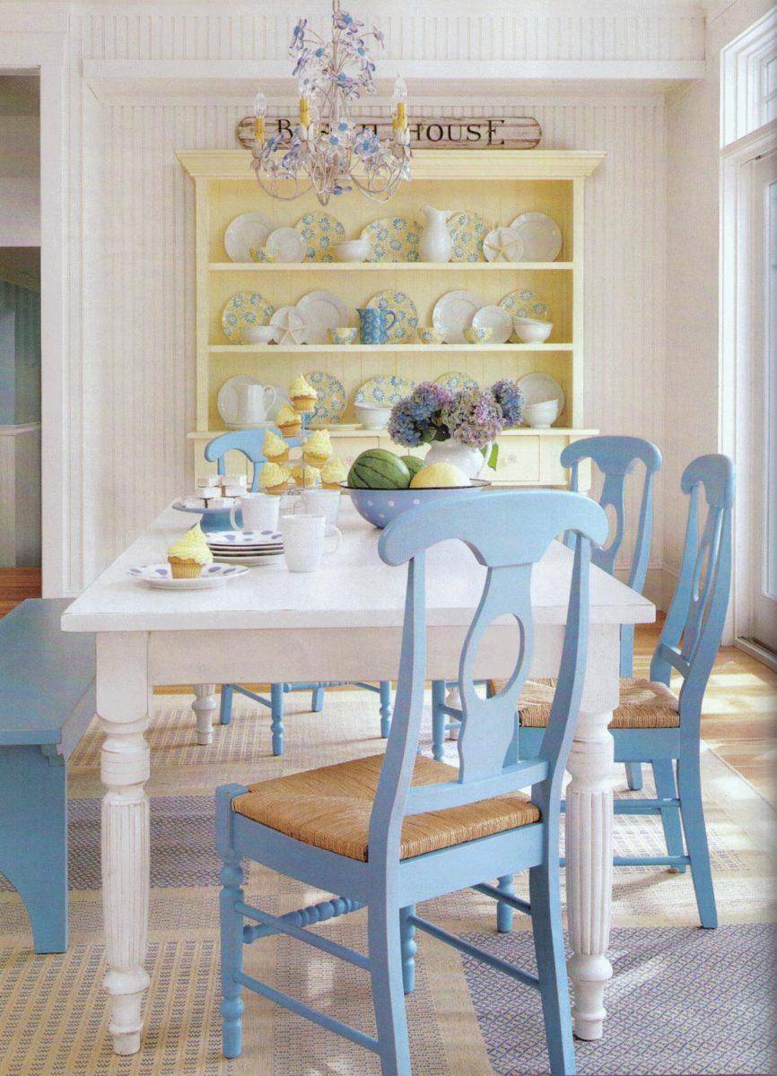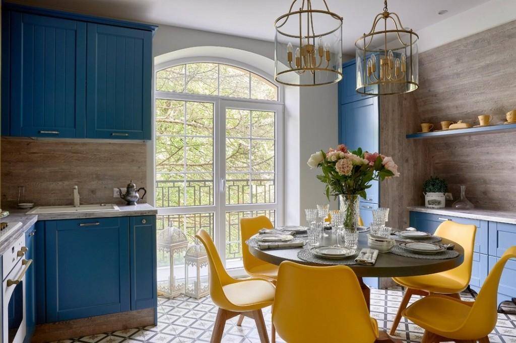 Конечно, если синий используют в качестве акцентного, то тогда этот оттенок, повторенный в цвете стола и стульев, будет более чем уместен.