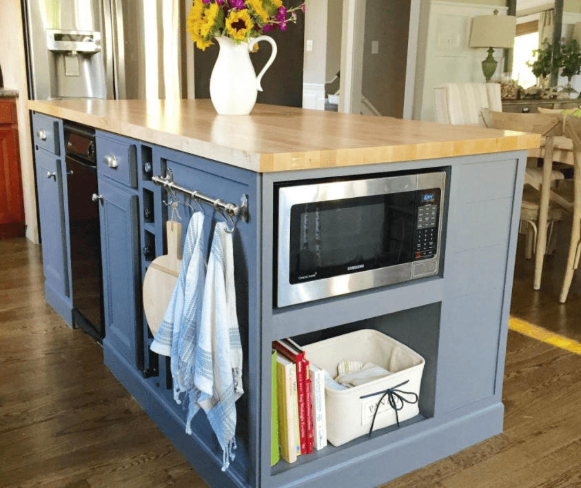 Замаскируйте такую полку в своем кухонном гарнитуре при его заказе у мастера.