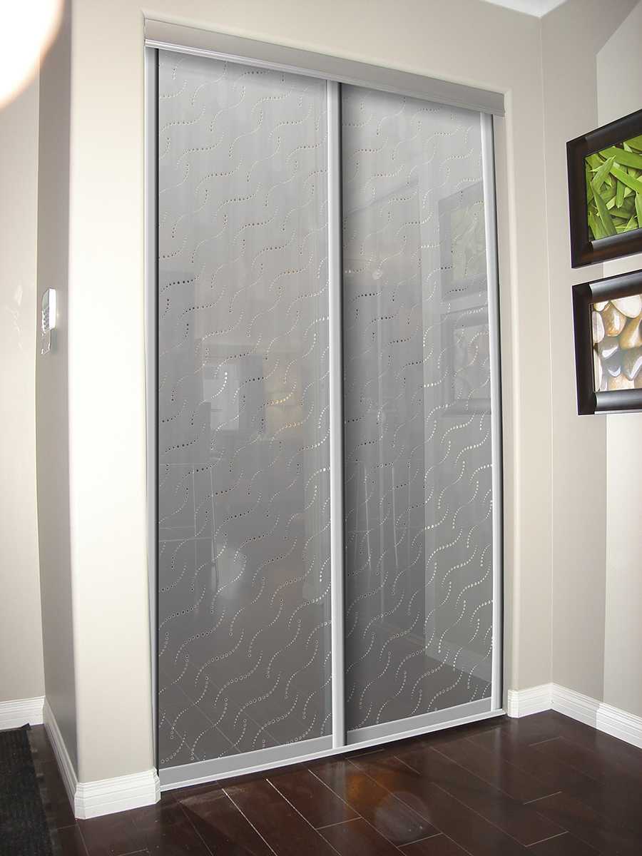 Этот вид корпусной мебели с раздвижными дверьми удобен и популярен в современное время. Для придания шика и оригинальности вместо дверей из ДСП часто заказывают стеклянные двери. Делают их из непрозрачного стекла с помощью напыления.