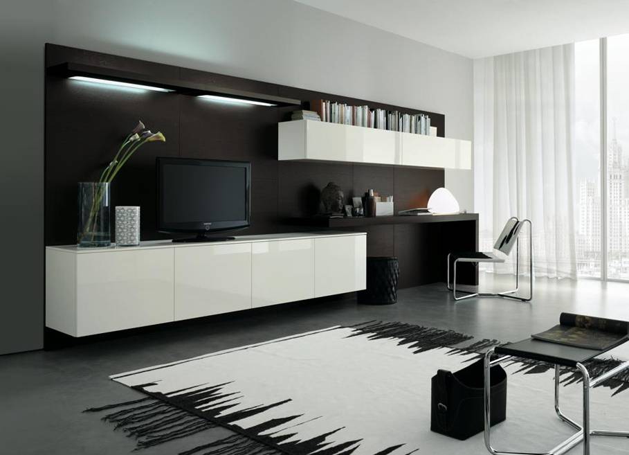 Идеально подойдут современные конструкции и для малогабаритных квартир, где при оформлении гостиной важно использование каждого квадратного сантиметра