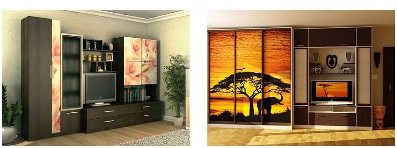 Стенка в гостиную со шкафом для одежды с фотопечатью выделит дизайн