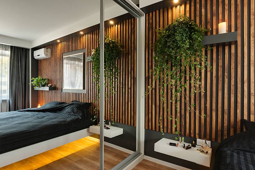 Шкаф-купе в спальне со стильным декором