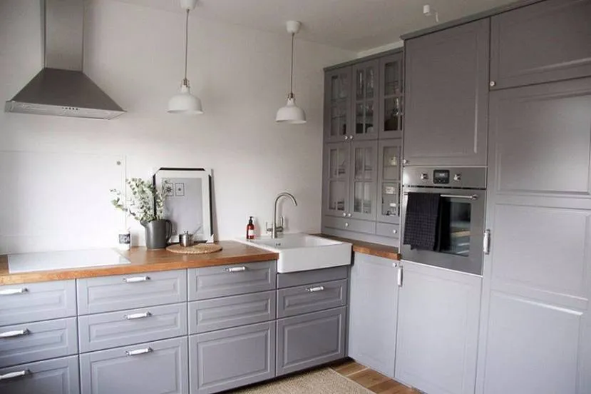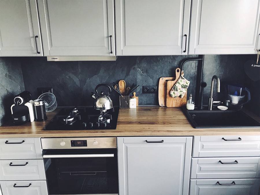 Универсальность кухонь Будбин позволяет использовать мебель в любом дизайне. Серия выделяется отсутствием лишнего декора и замысловатости, что помогает создать гармоничное и уютное оформление. Нейтральность серого цвета корректирует недостатки помещения.