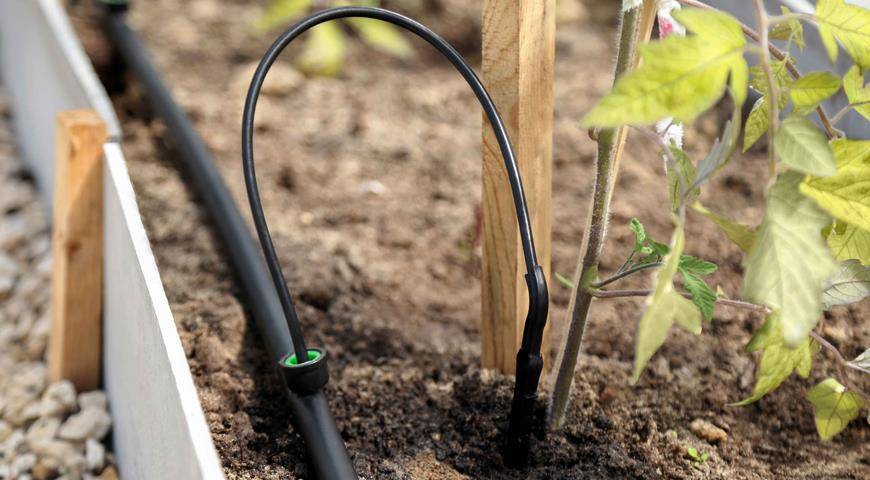 Один из лучших способов полива куста помидор – под корень капельным поливомИсточник dizajn-sada.ru