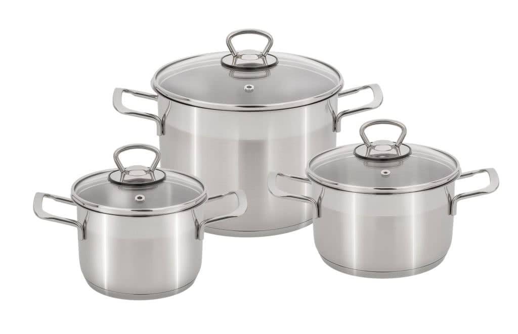 Материал не влияет на вкусовые качества пищи, не окисляется, можно даже использовать для готовки с уксусом (в отличие от алюминиевой посуды). За счет теплоаккумулирующих свойств позволяет экономить электричество и газ: плиту можно выключать чуть раньше, чем пища полностью готова, она «дойдет» до нужной стадии в кастрюле. Большинство моделей выглядят стильно и современно, органично вписываются в дизайн кухни.