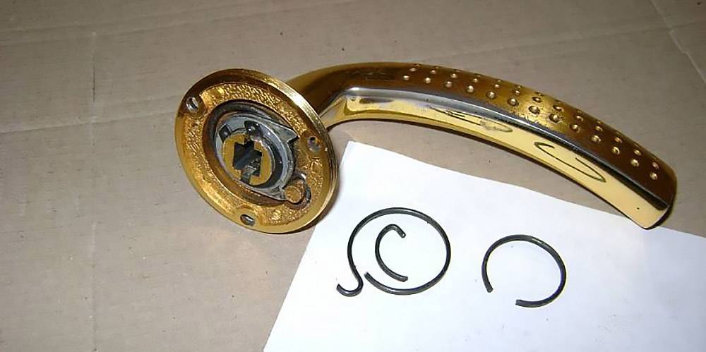 Ещё одна частая проблема ручек дверного полотна — данная деталь фурнитуры после нажатия либо поворота в сторону при открытии створки не возвращается в первоначальное положение. Причиной этому является пружина, которая либо соскочила, либо треснула.