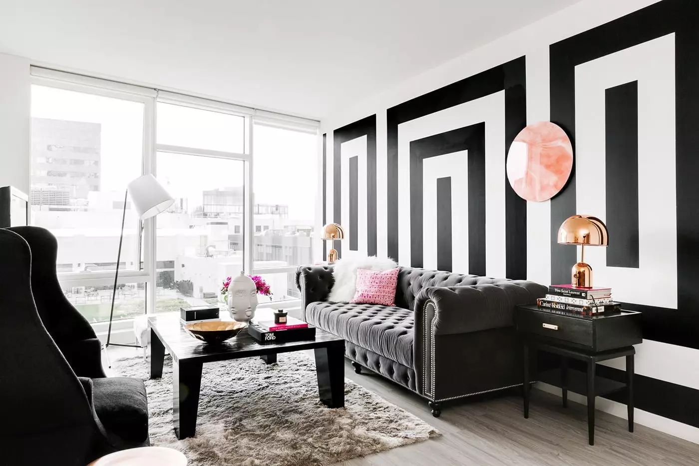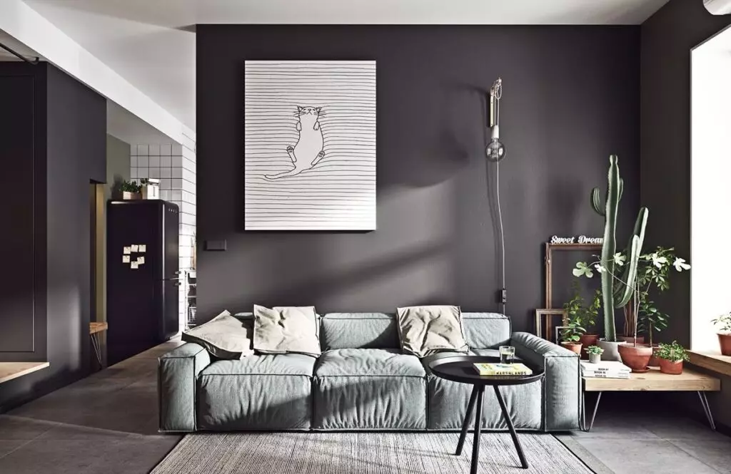 - Навсегда забудьте об использовании только(!) черно-белой гаммы. Их баланс смотрится гармонично лишь первое время и не в жилых помещениях. Обязательно разбавьте их дуэт яркими красками и другими полутонами.