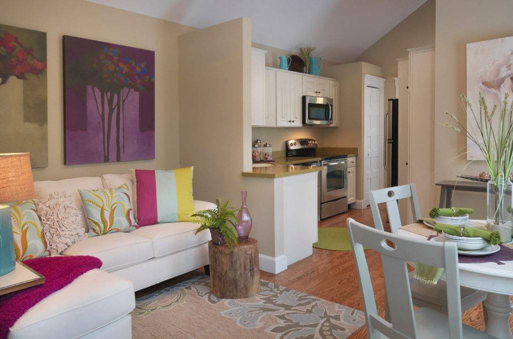 Удачное сочетание гостиной и кухни в маленькой квартире
