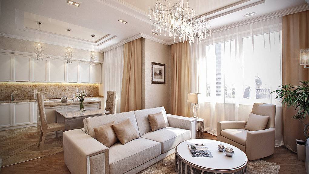 Если отделочные работы в планах производить в малогабаритной квартире с небольшими комнатами, то кухню совмещать с гостиной рекомендуется практически во всех случаях. Единственное исключение – когда снос межкомнатных стен запрещен проектом дома. При этом даже после объединения общая комната обычно не становится сильно просторной. Дизайн для нее лучше всего разрабатывать в «облегченном» варианте со светлым декором и минимумом мебели.