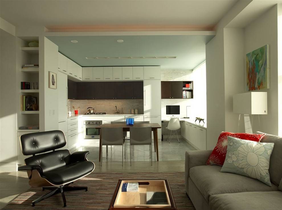 Первое, с чем вы столкнетесь, если окончательно решите сделать комнату-студию из кухни и гостиной, это с необходимостью согласовать перепланировку квартиры с государственными органами. Новый проект квартиры и его согласование потребуют некоторых финансовых затрат и, к сожалению, достаточно долгого времени — от 3-х до 6-ти месяцев.