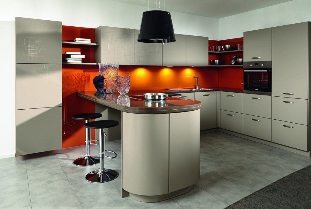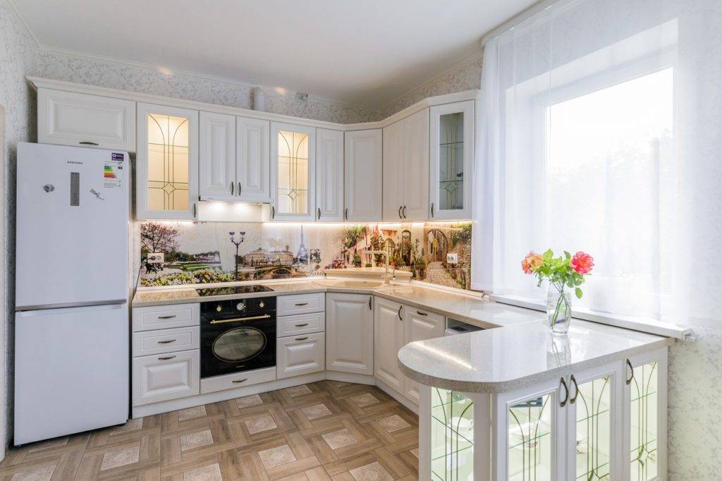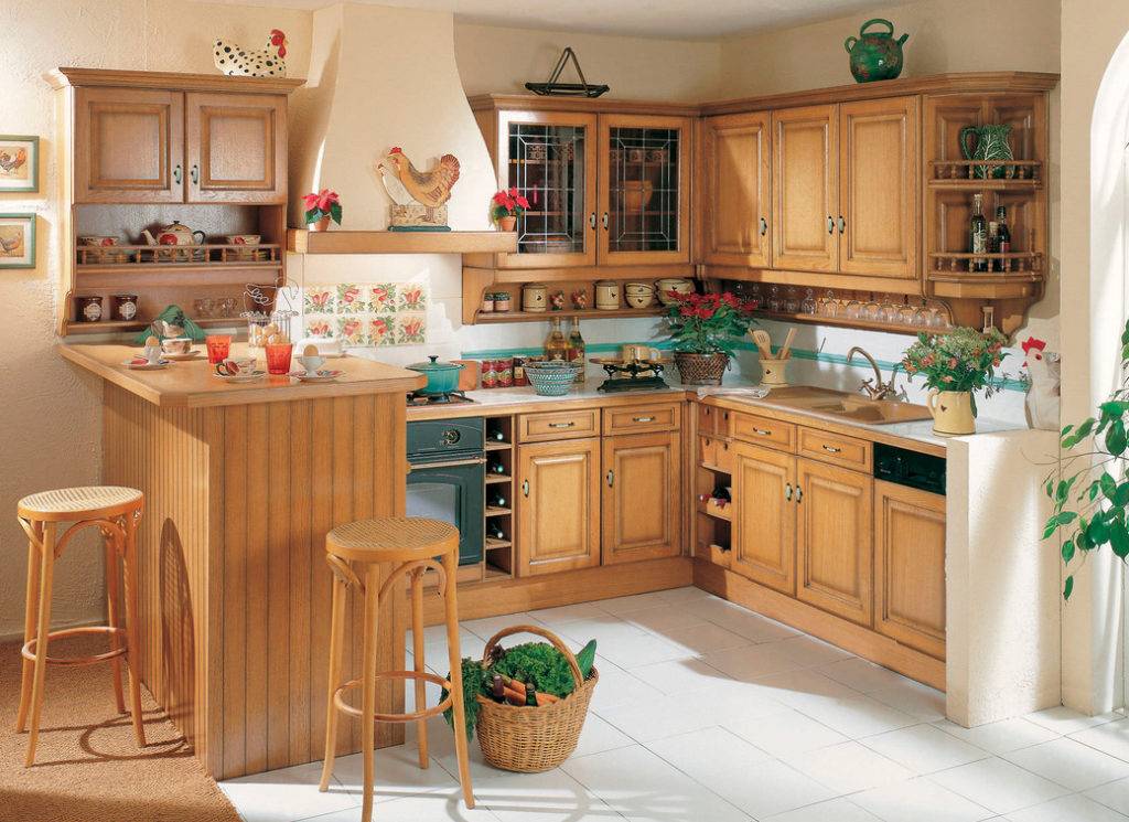 Обычно угловые кухни имеют форму буквы Г. Дополнив ее барной стойкой, можно получить более уютное и удобное для хозяйки помещение.