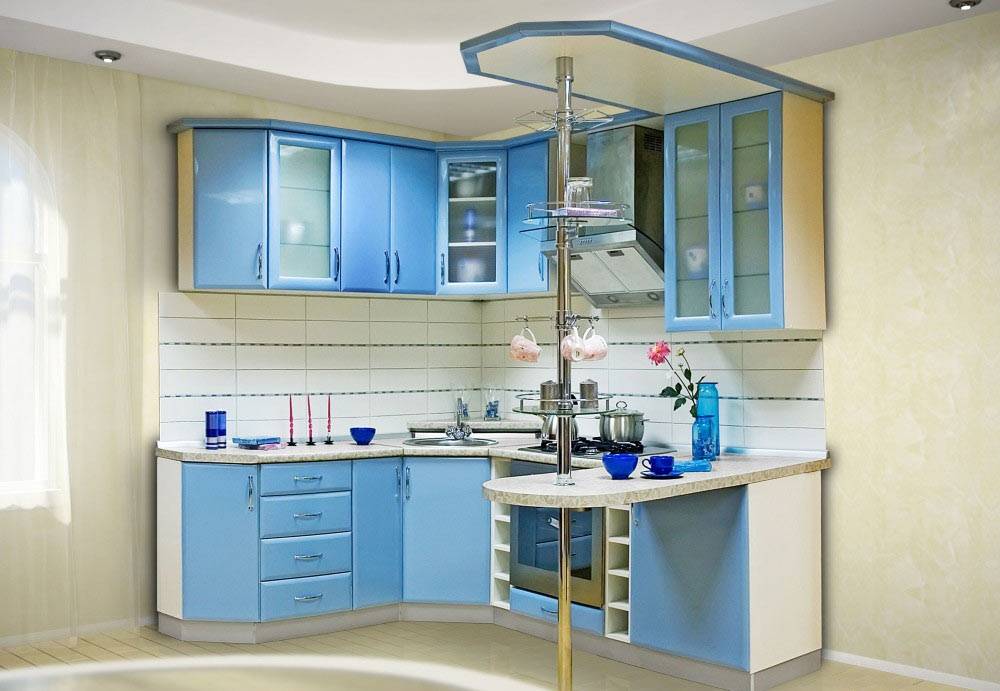 Комплект мебели кухни скруглен, отдельный шкаф заполнет пространство углаИсточник i1.photo.2gis.com