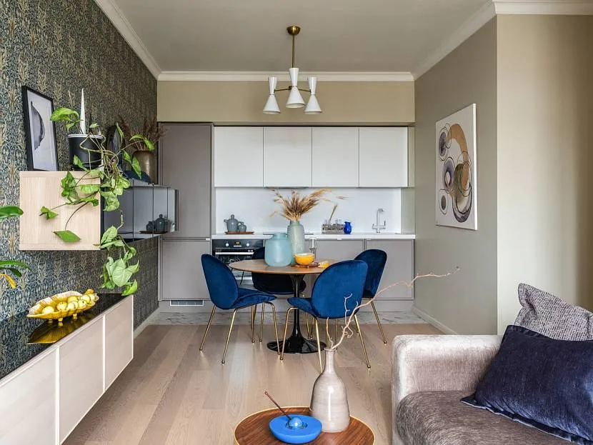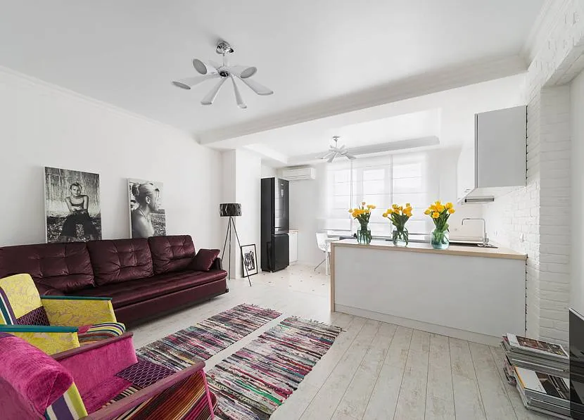 Выбирают стиль оформления и цветовую палитру. Интерьер в светлых и пастельных тонах предпочтителен, так как светлый потолок кажется выше, а сама студия визуально выглядит просторнее. С другой стороны, площадь гостиной и кухни в 25 кв. м достаточна, чтобы оформить её с использованием темных и насыщенных цветов.