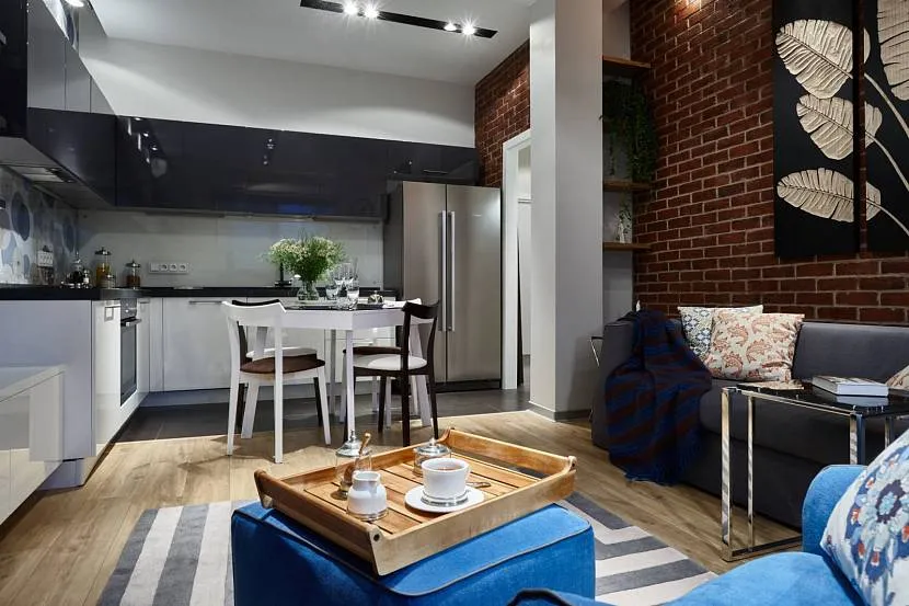 Для студийного помещения важно грамотно разделить места отдыха, приёма и приготовления пищи
