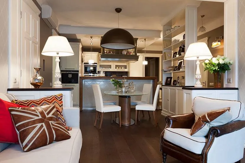 Возможность регулировать размеры зон. От предпочтений хозяев зависит, останется ли кухня маленькой, или её площадь увеличится вдвое, и процесс приготовления завтраков и обедов превратится в приятное занятие. Большая гостиная понадобится в доме, где часто бывают гости.