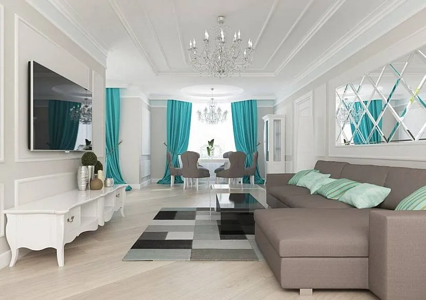 - для кухни лучше всего подойдут спокойные, холодные оттенки, синий. А гостиную можно оформить в теплых тонах;