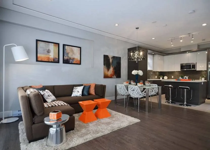 При обустройстве кухни-гостиной особое внимание следует уделить оформлению – именно от него зависит, насколько гармоничной будет обстановка. Чтобы пространство смотрелось единым целым, необходимо: