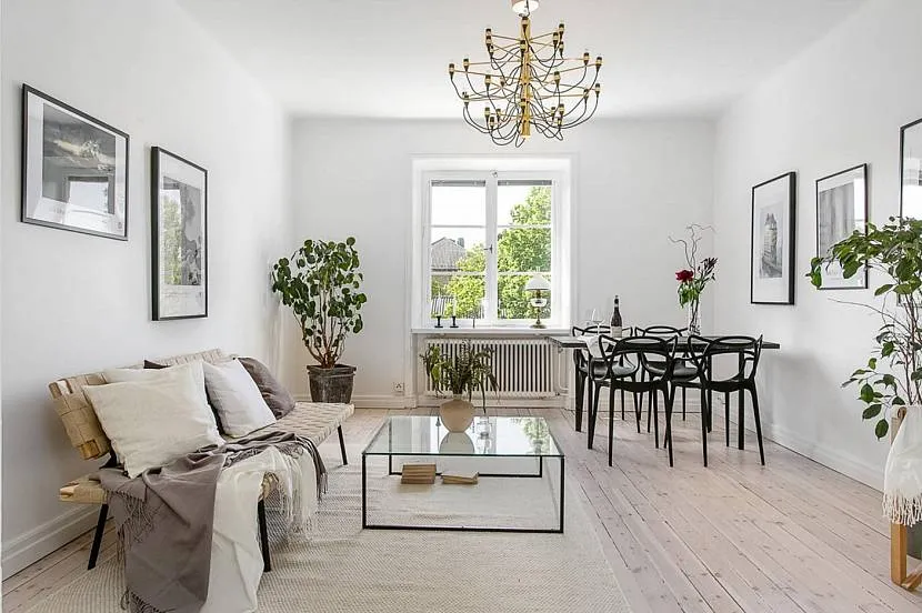 Скандинавский. Идеально подходит для маленьких помещений. В отделке стен и потолка преобладает белый цвет, подбираются предметы мебели светлых оттенков, зачастую сделанные из выбеленного дерева (ясеня, бука). Форма всех предметов лаконичная, но интерьер выглядит элегантно благодаря деревянным и кованым элементам декора.