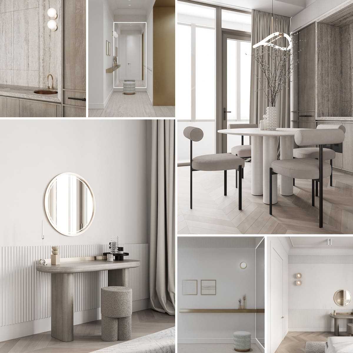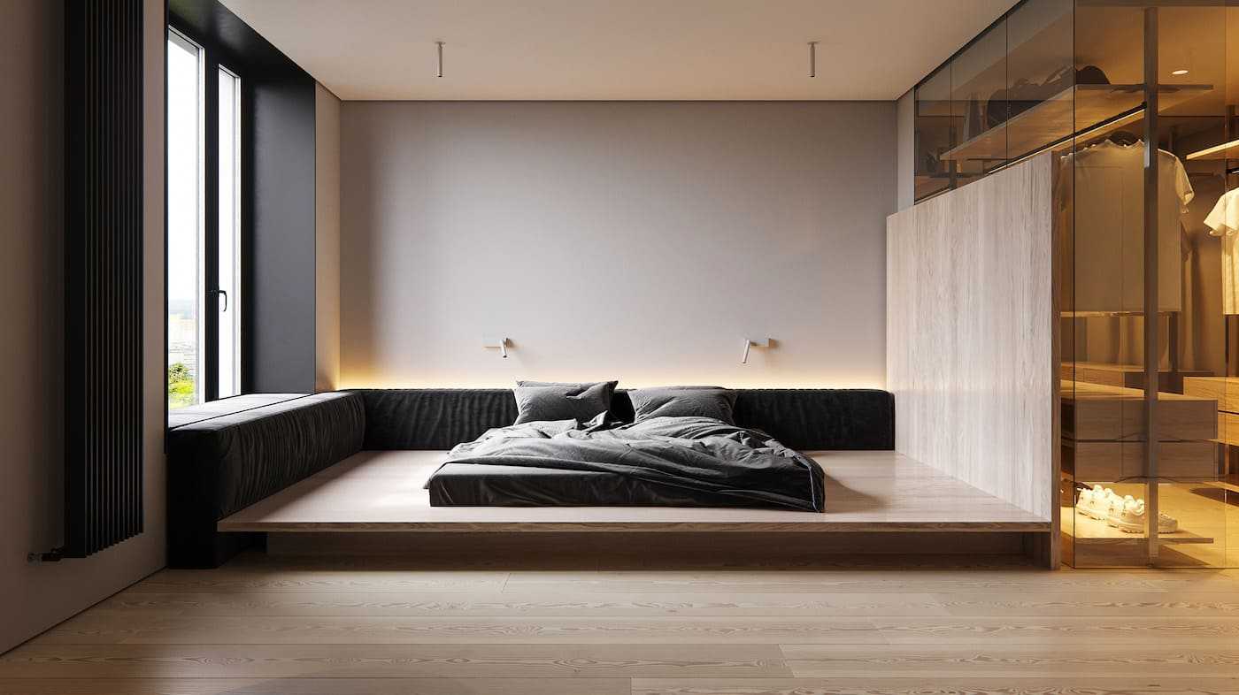 - Однотонный минимализм должен быть скромным, но не скучным. Лучше сочетать несколько тусклых нейтральных цветов, чем выполнить все одинаковым.